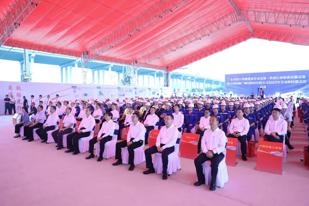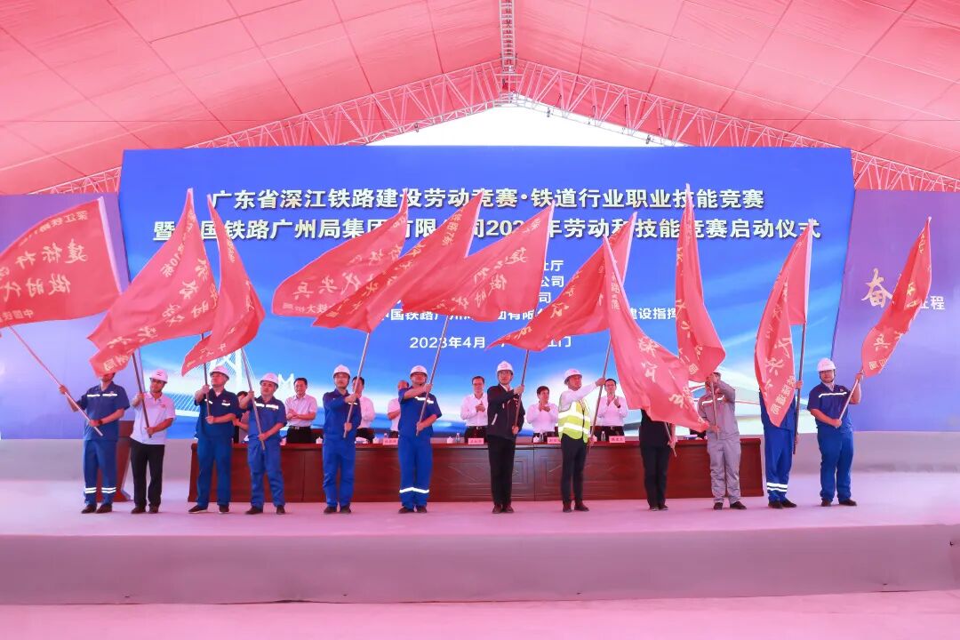 啟動(dòng)儀式由廣東省人大**會(huì)**成員、省總工會(huì)**呂業(yè)升宣布啟動(dòng)。集團(tuán)公司總經(jīng)理趙麗建致辭,集團(tuán)公司工會(huì)**、副總經(jīng)理申儉聰主持儀式。廣東省總工會(huì)、人力資源與社會(huì)保障廳相關(guān)領(lǐng)導(dǎo)出席并講話。深江鐵路12個(gè)標(biāo)段建設(shè)、設(shè)計(jì)、施工、監(jiān)理單位代表、集團(tuán)公司職業(yè)技能競賽全能冠軍代表及所屬單位工會(huì)**等300余人參加。