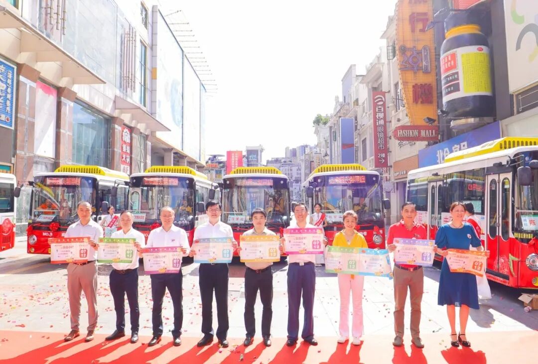 “醒目號(hào)”“有米號(hào)”“威水號(hào)”“架勢(shì)號(hào)”……6臺(tái)各具特色的西關(guān)文旅巴士——“荔荔小巴”正式亮相,吸引了大批市民游客拍照打卡。