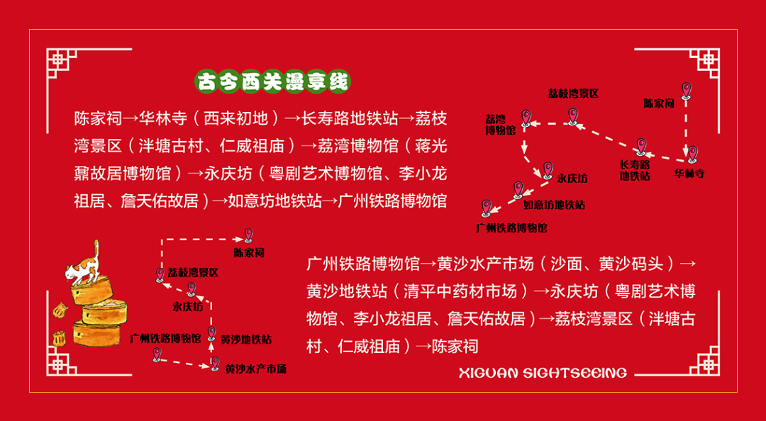 西關(guān)文旅巴士共分為2條線路,帶市民游客一站式游覽西關(guān)精華景點(diǎn):