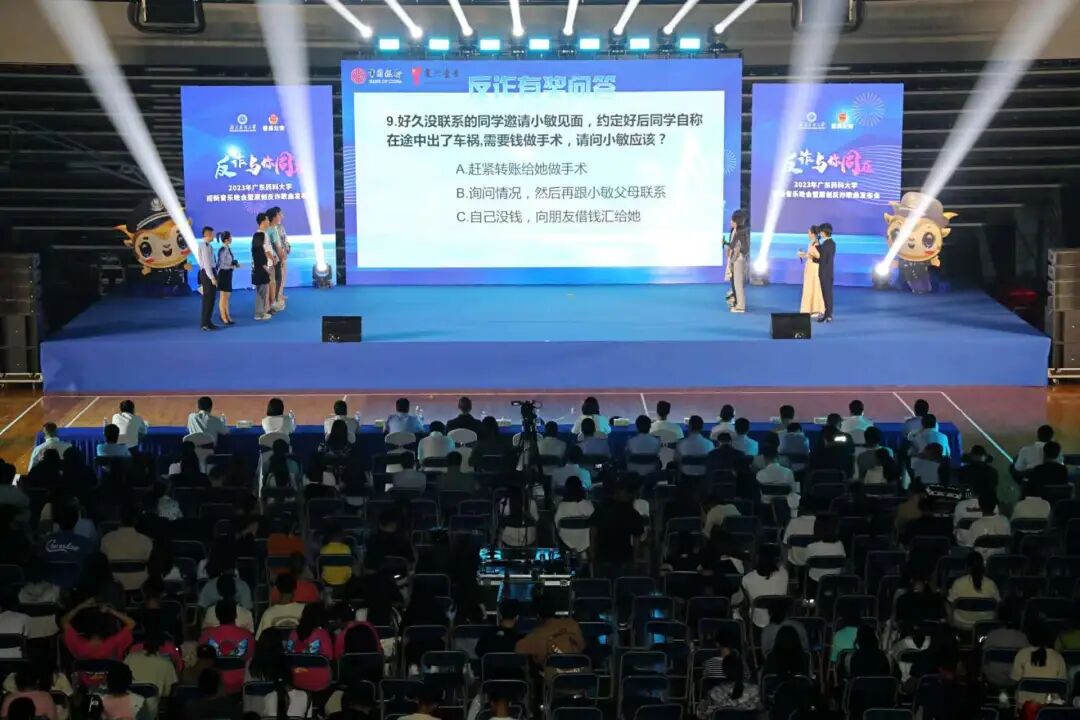 10月12日,廣州市公安局番禺區(qū)分局聯(lián)合廣東藥科大學(xué)在廣東藥科大學(xué)體育館舉辦"2023年廣東藥科大學(xué)迎新音樂(lè)晚會(huì)暨原創(chuàng)反詐歌曲發(fā)布會(huì)"活動(dòng)。本次活動(dòng)面向廣東藥科大學(xué)2023級(jí)新生、廣州大學(xué)城高校學(xué)生群體開(kāi)展,全程在線直播,現(xiàn)場(chǎng)觀眾超3000人次,線上觀眾超80000人次,直播收獲點(diǎn)贊數(shù)達(dá)13萬(wàn)次,活動(dòng)氛圍濃厚,反響熱烈。